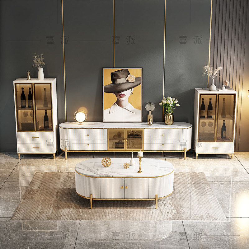 سليت طاولة القهوة تلفزيون مجلس الوزراء مزيج بسيط نمط غرفة المعيشة مجلس الوزراء الرخام المنزل التلفزيون
